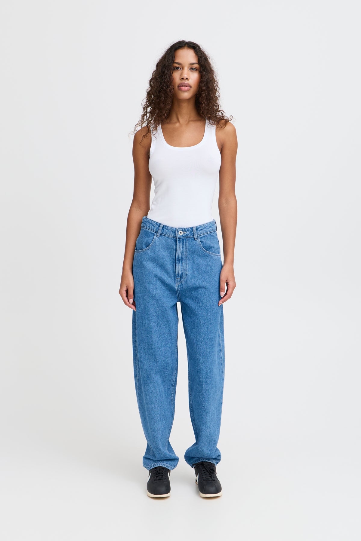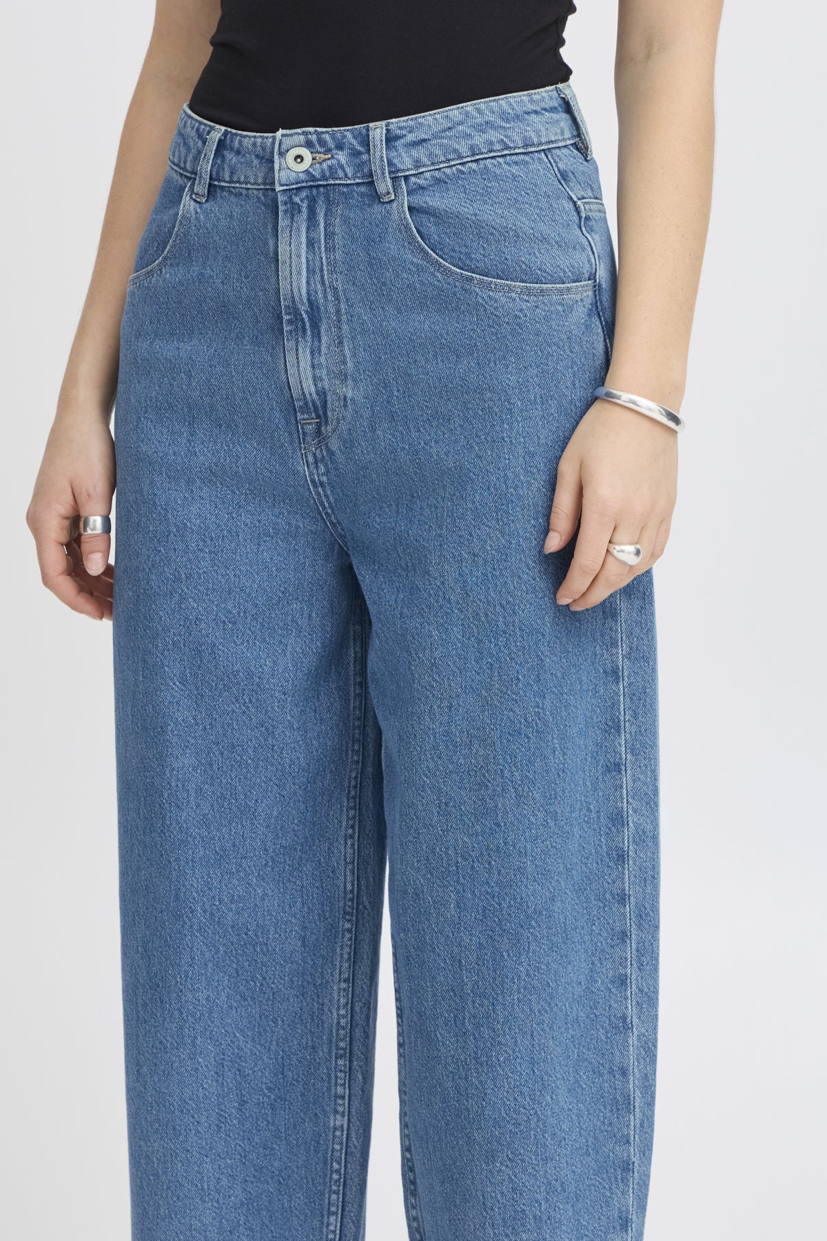Loose fit, and high waisted barrel leg jeans. These are full length / 32 inch.